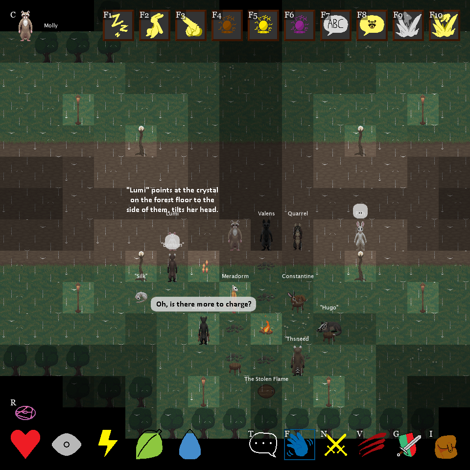 When everyone is the main character, no one is. Events will unfold around you in real time, whether you're aware of them or not. You will regularly stumble into situations you didn't anticipate. Dozens of stories unfold across Kalris, which you might have to learn about through gossip, or you might never know about at all. Your time in Farwoods will be completely unique and tailored specifically to you.